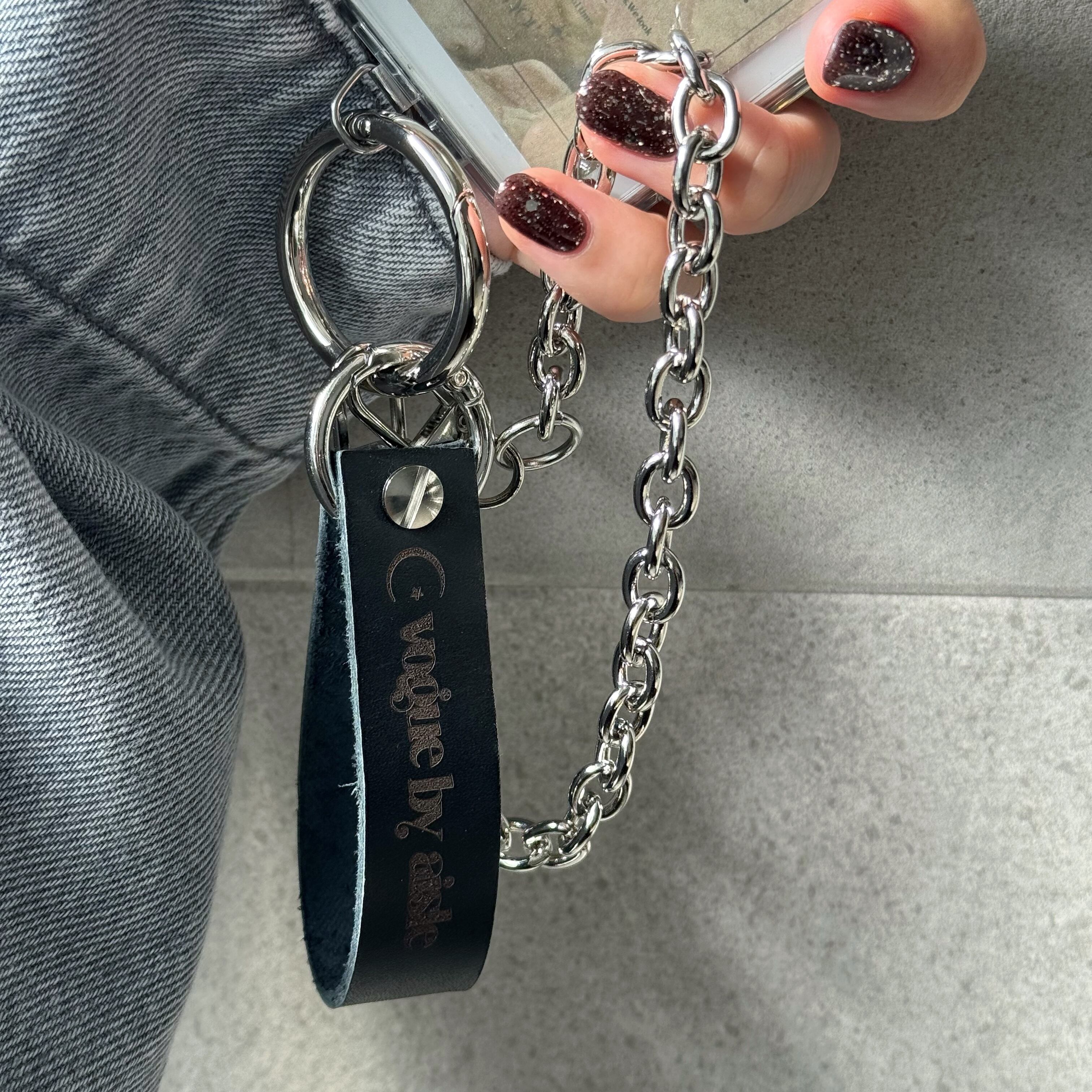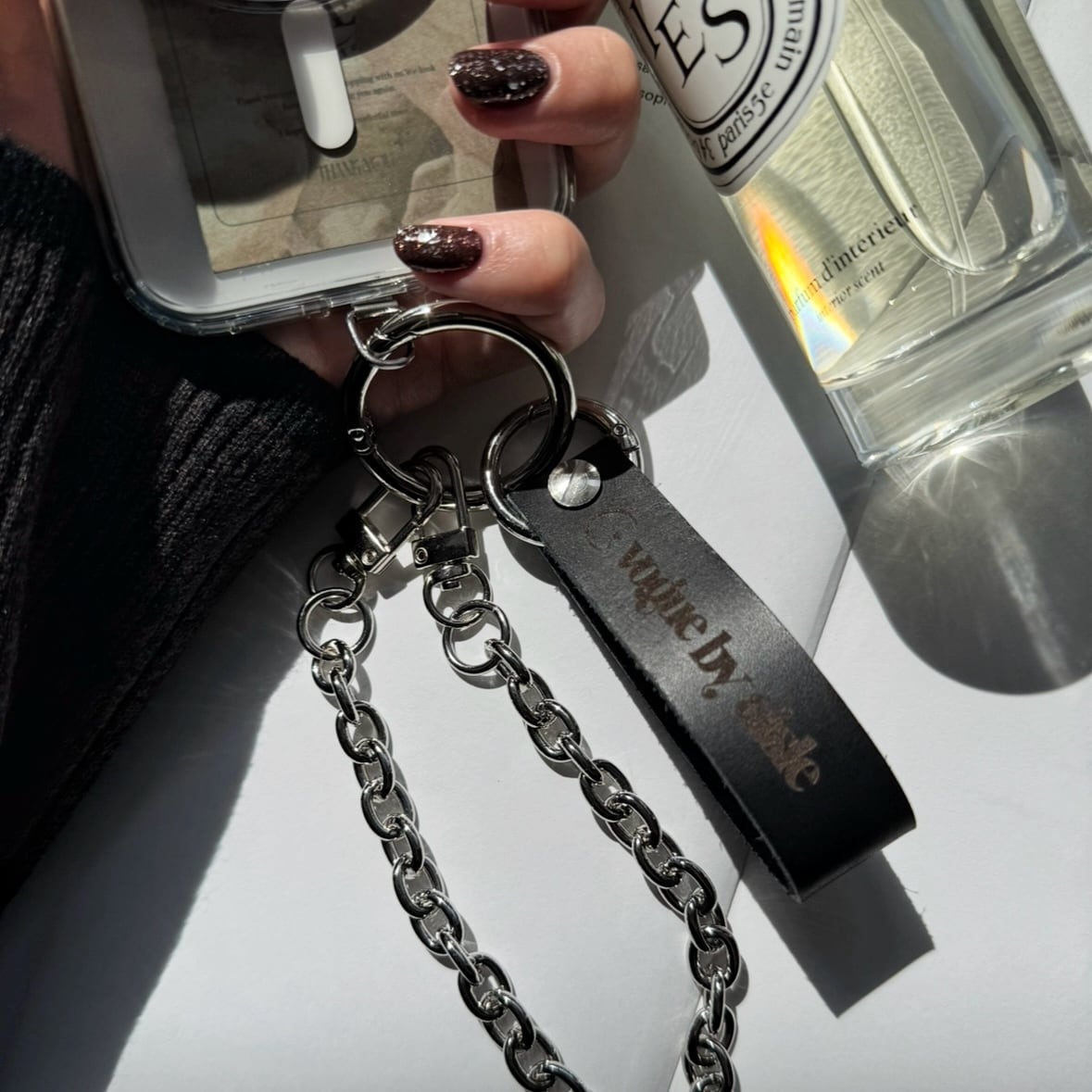 スマホストラップ¦ハンドストラップ¦本革×チェーン