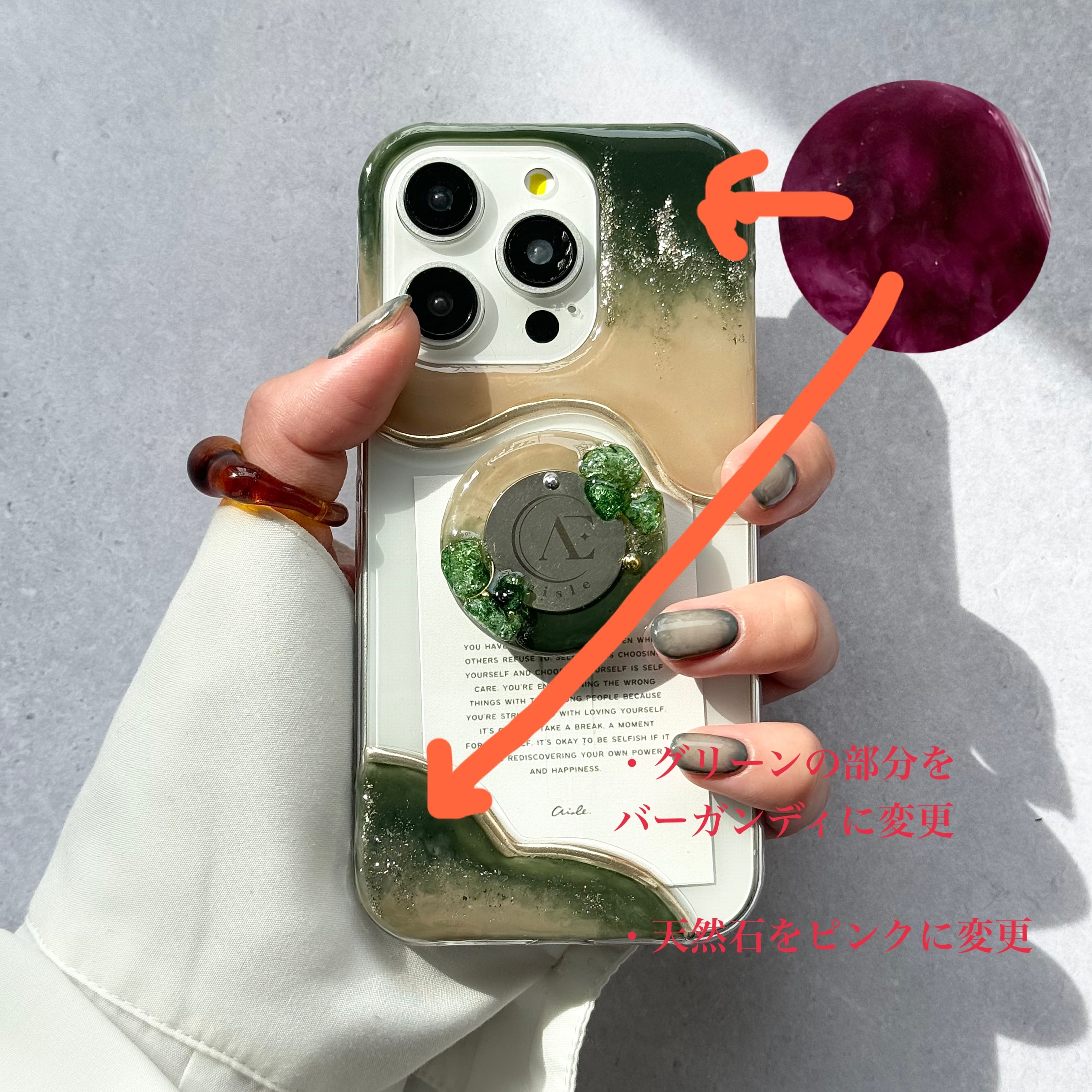 ・グリップの天然石をピンクに変更