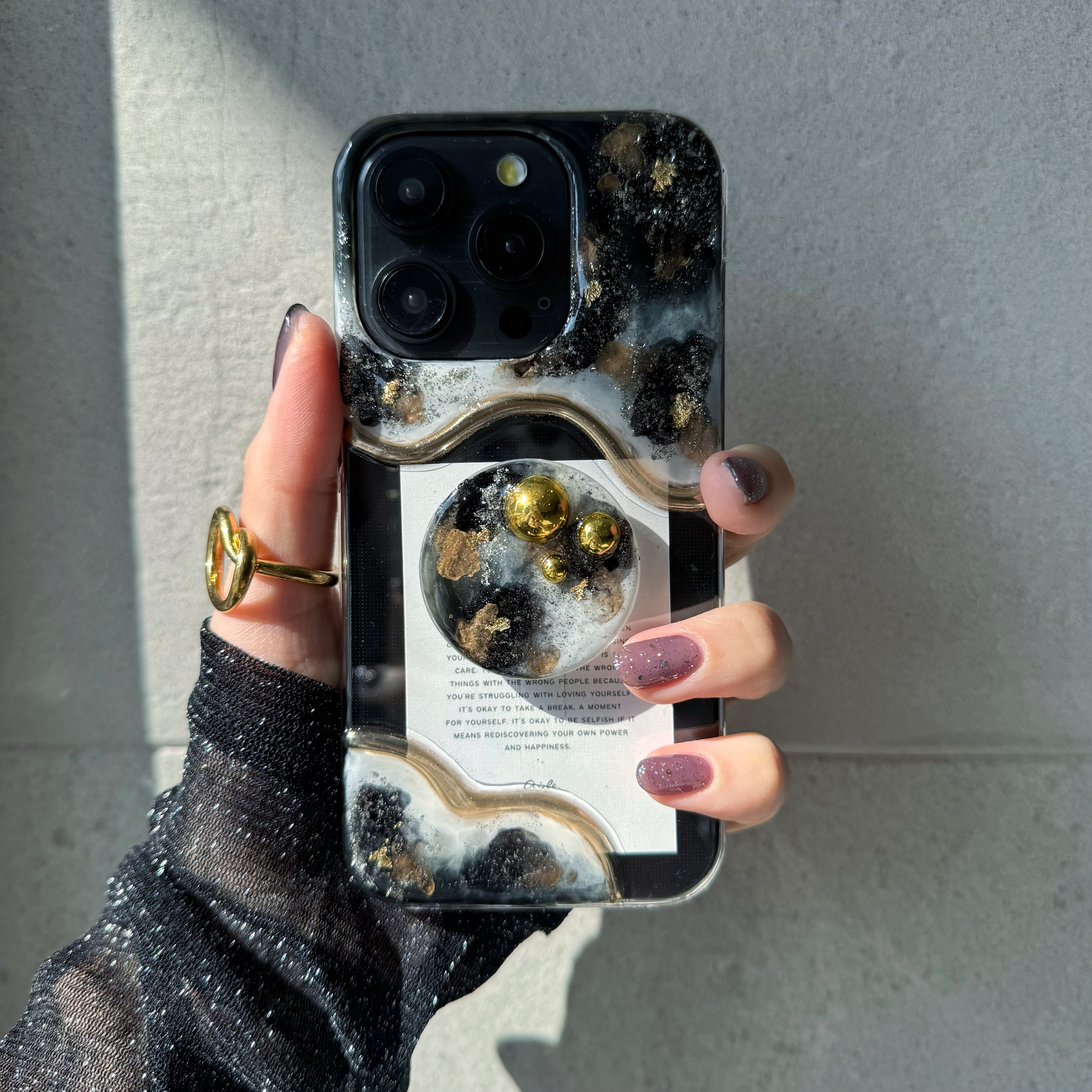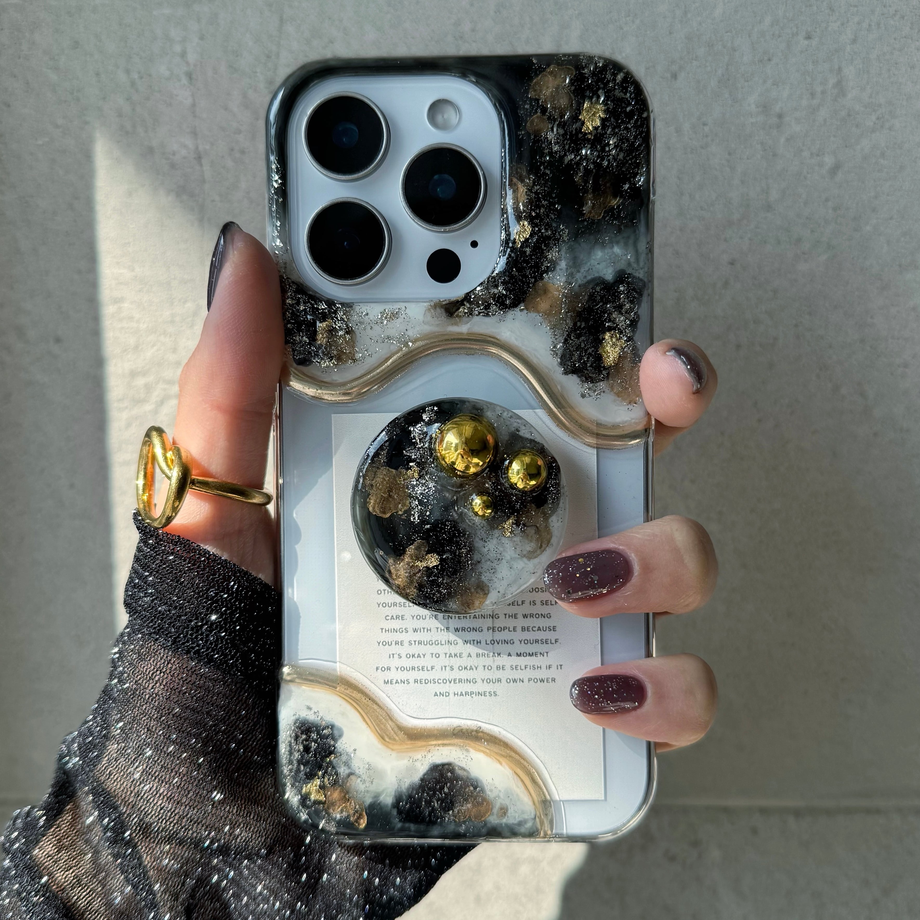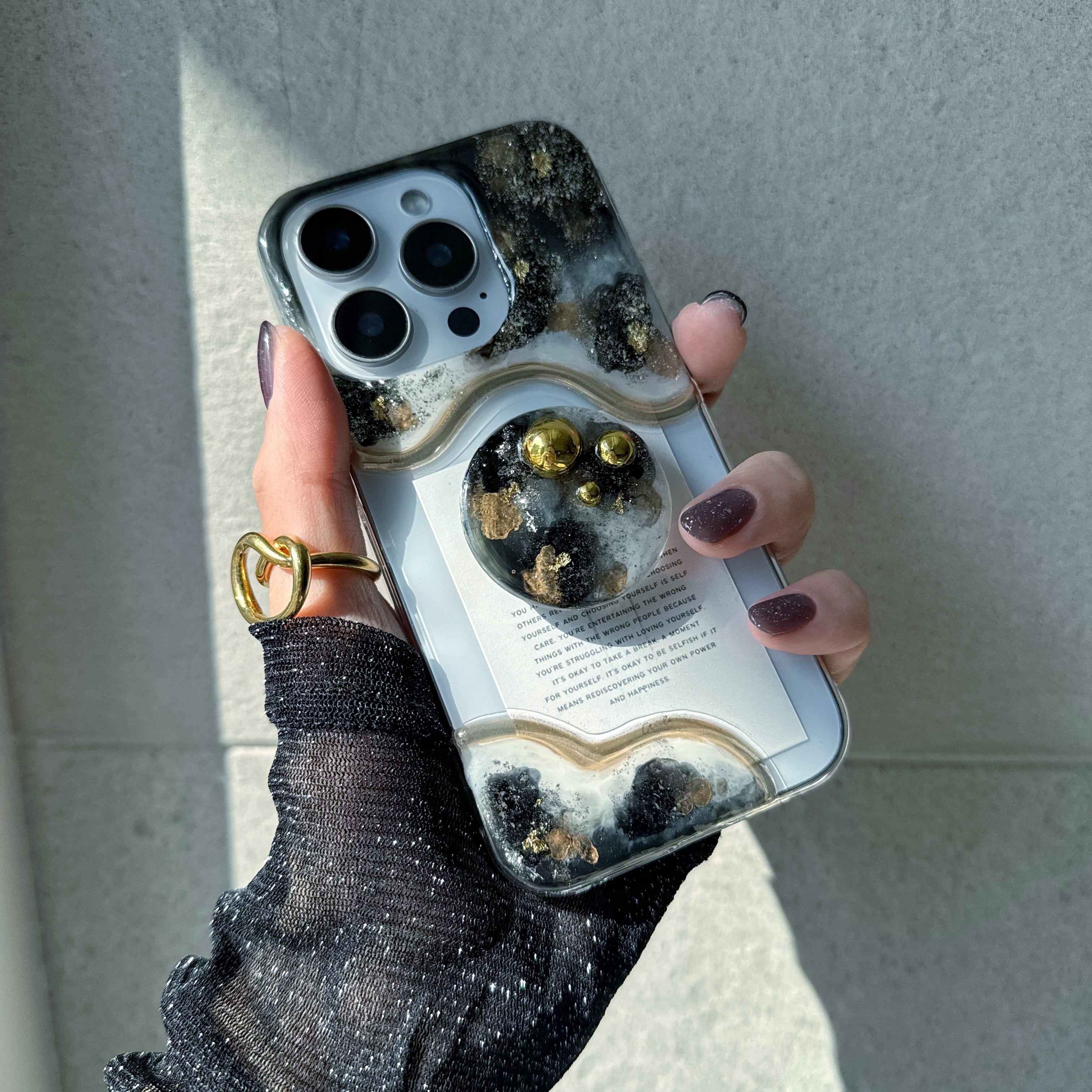 スタッズ付きニュアンススマホグリップ付きiPhoneケース¦【17Pro¦17Pro MAX¦17Airお作り可】¦【選べるカード】