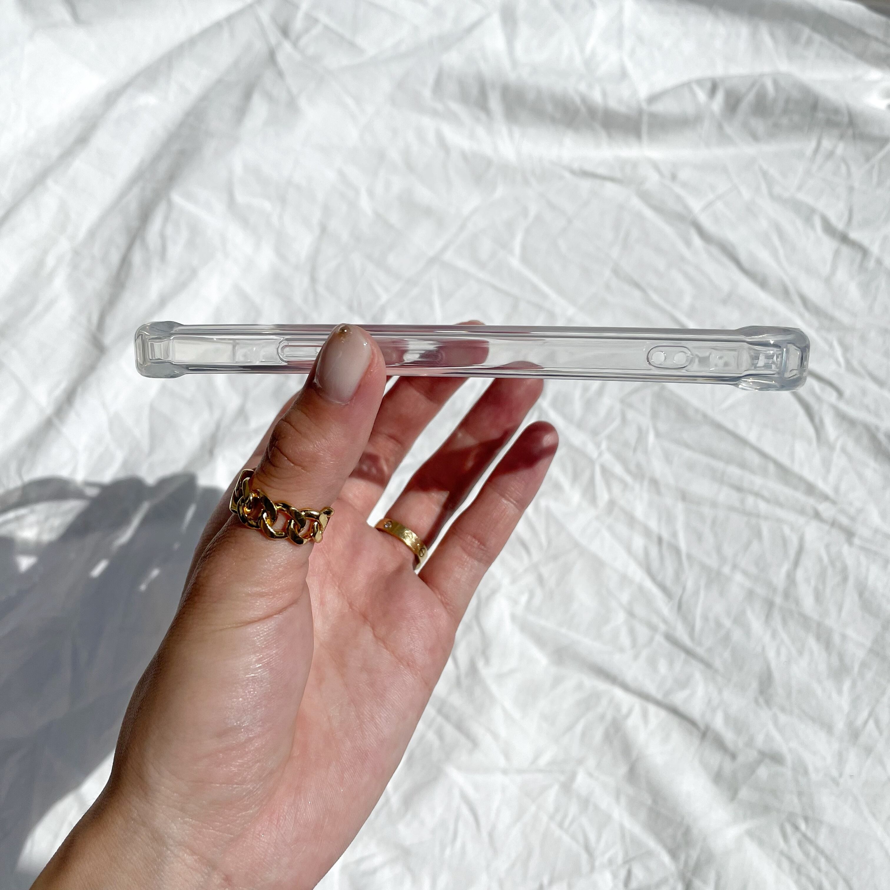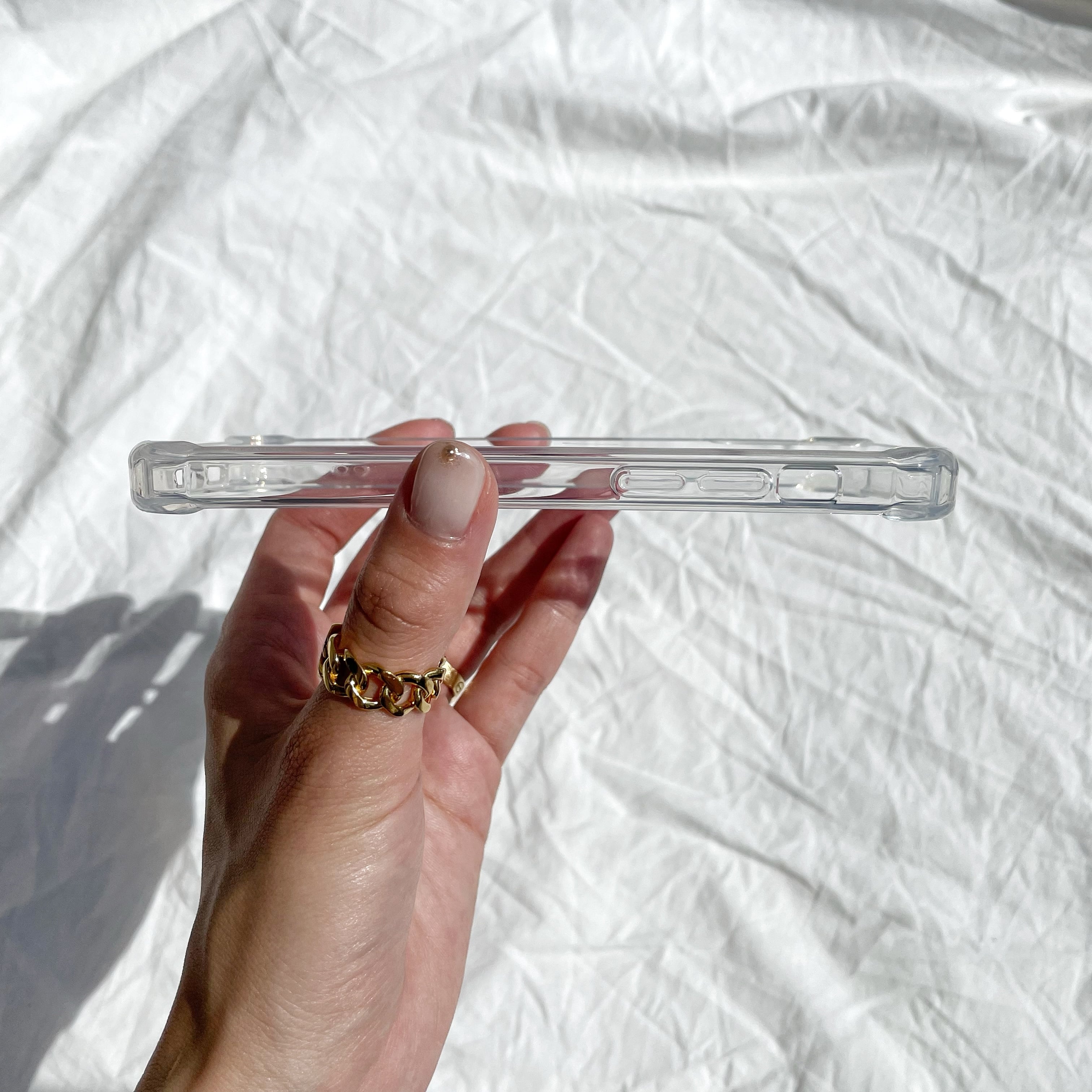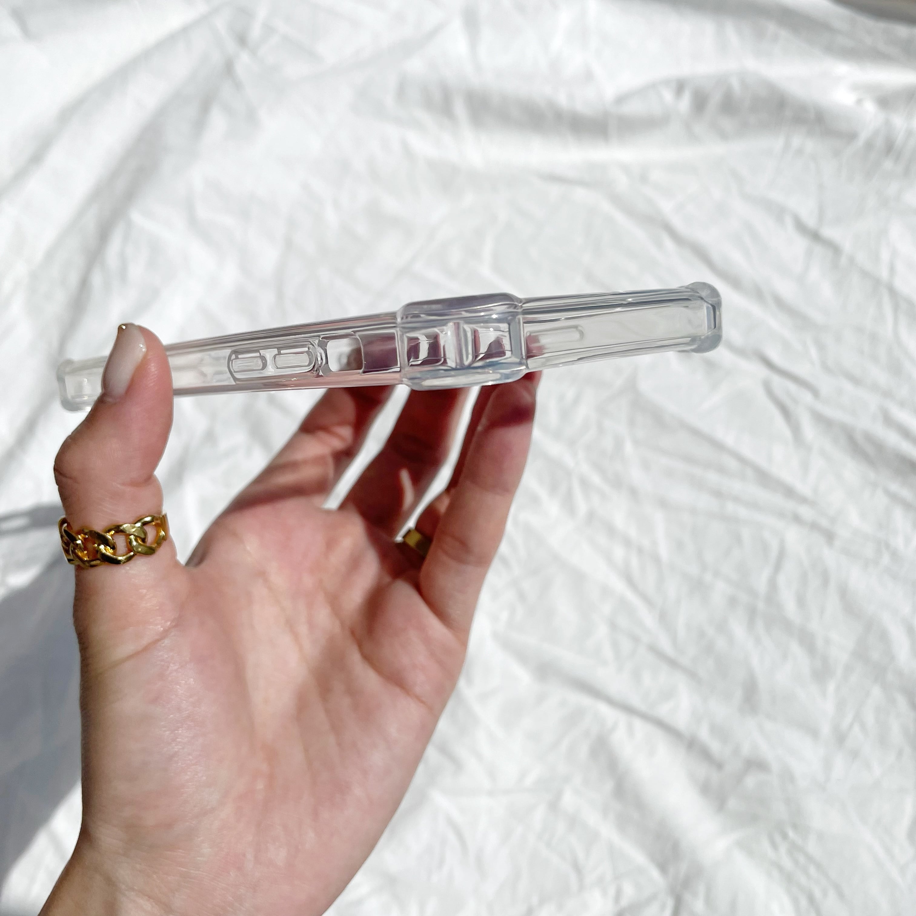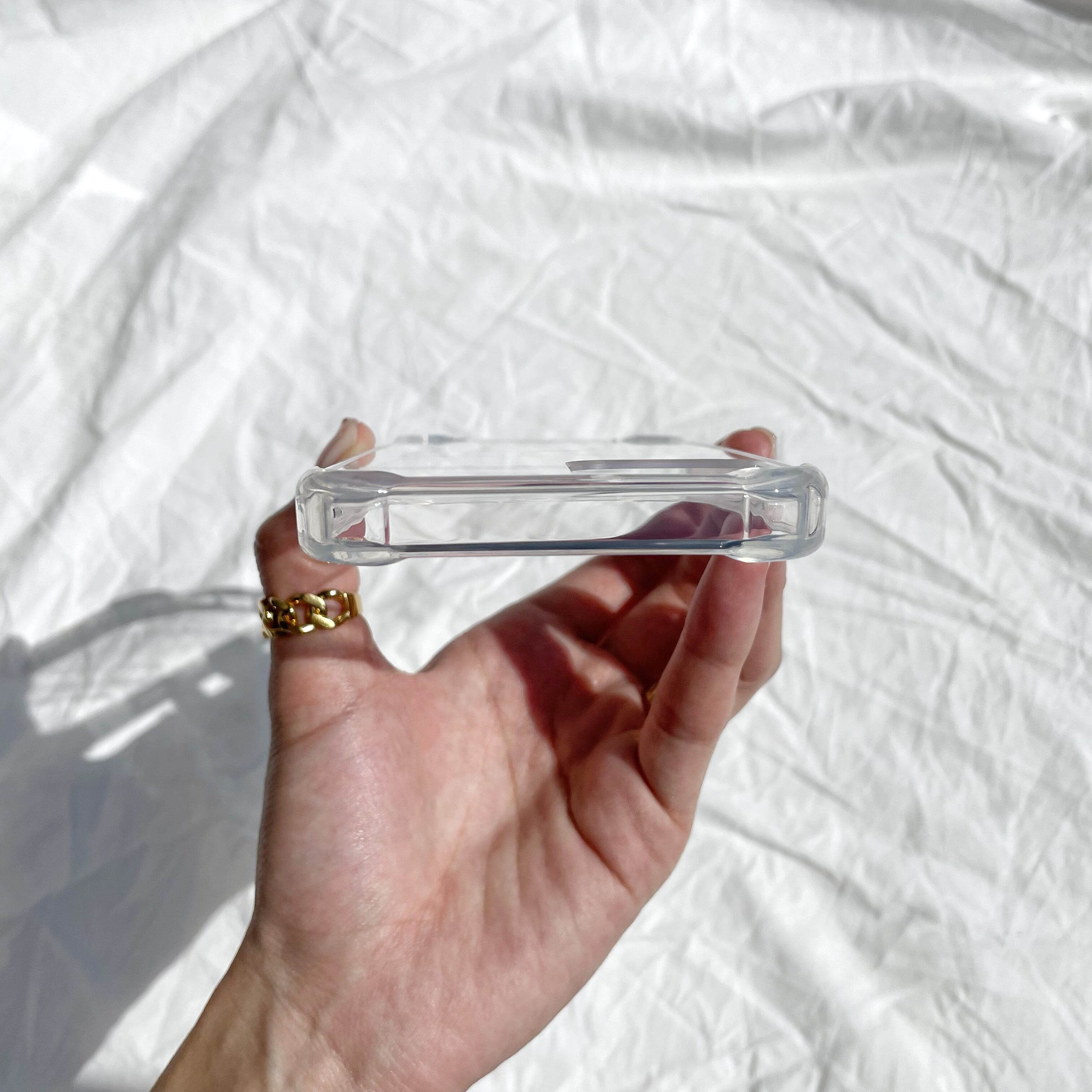 衝撃吸収構造付きのTPU×PC クリアスマホケースです。