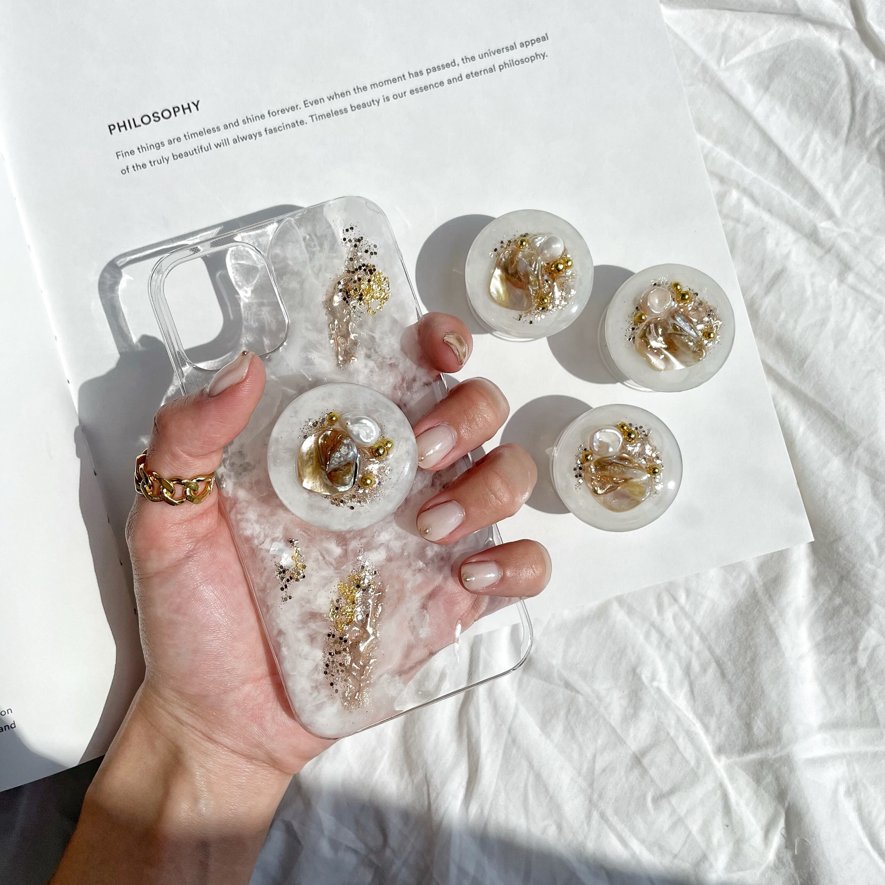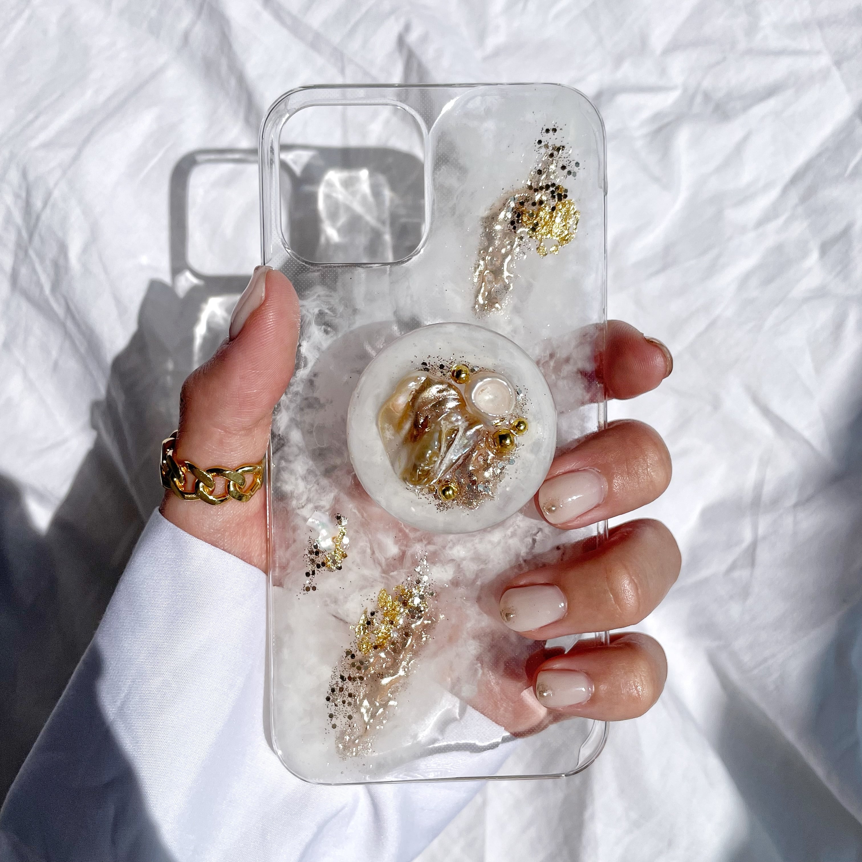 【white】【スマホグリップ付き】ニュアンスiPhoneケース