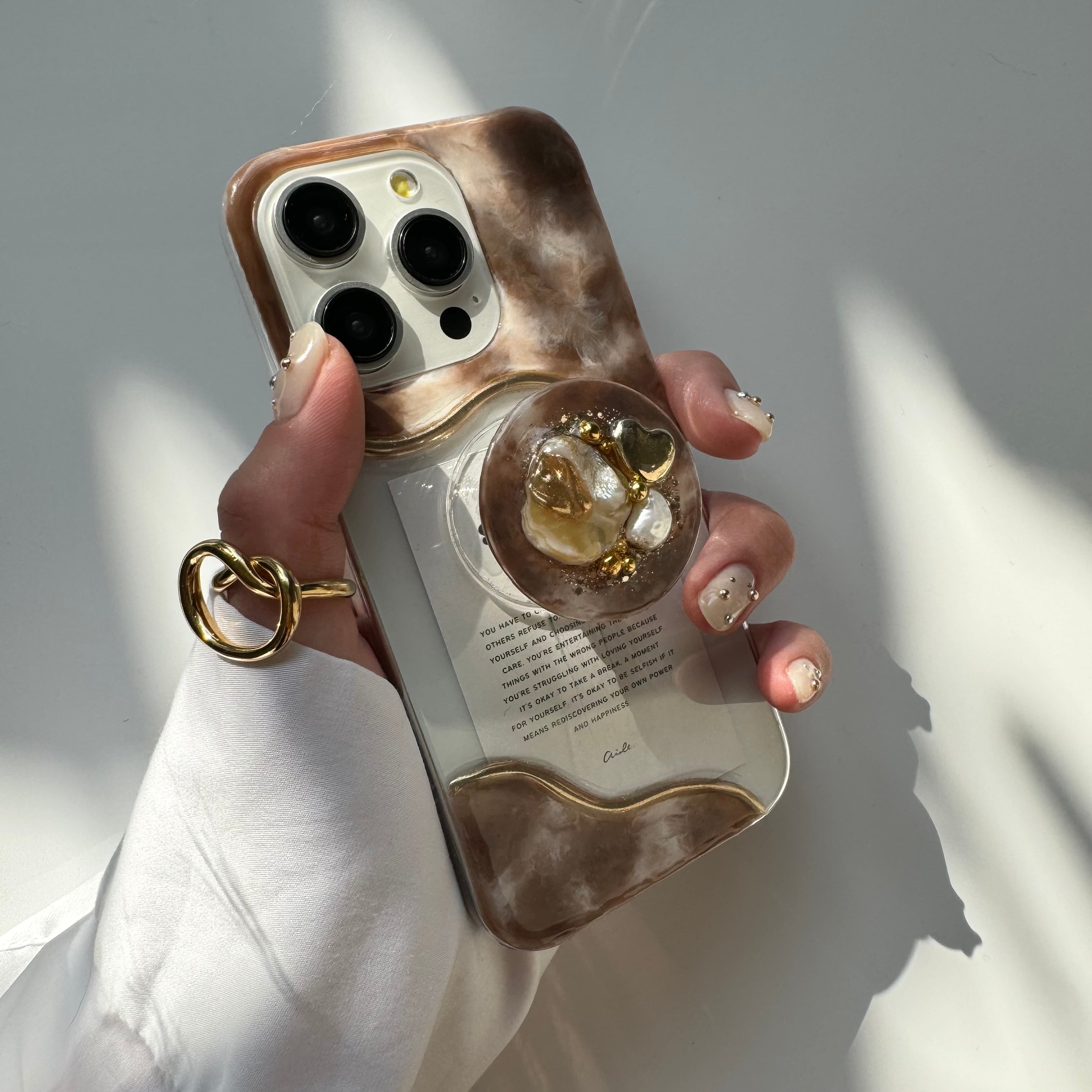 【brown】【グリップ付き】ハートニュアンスiPhoneケース¦【17Pro¦17Pro MAX¦17Airお作り可】