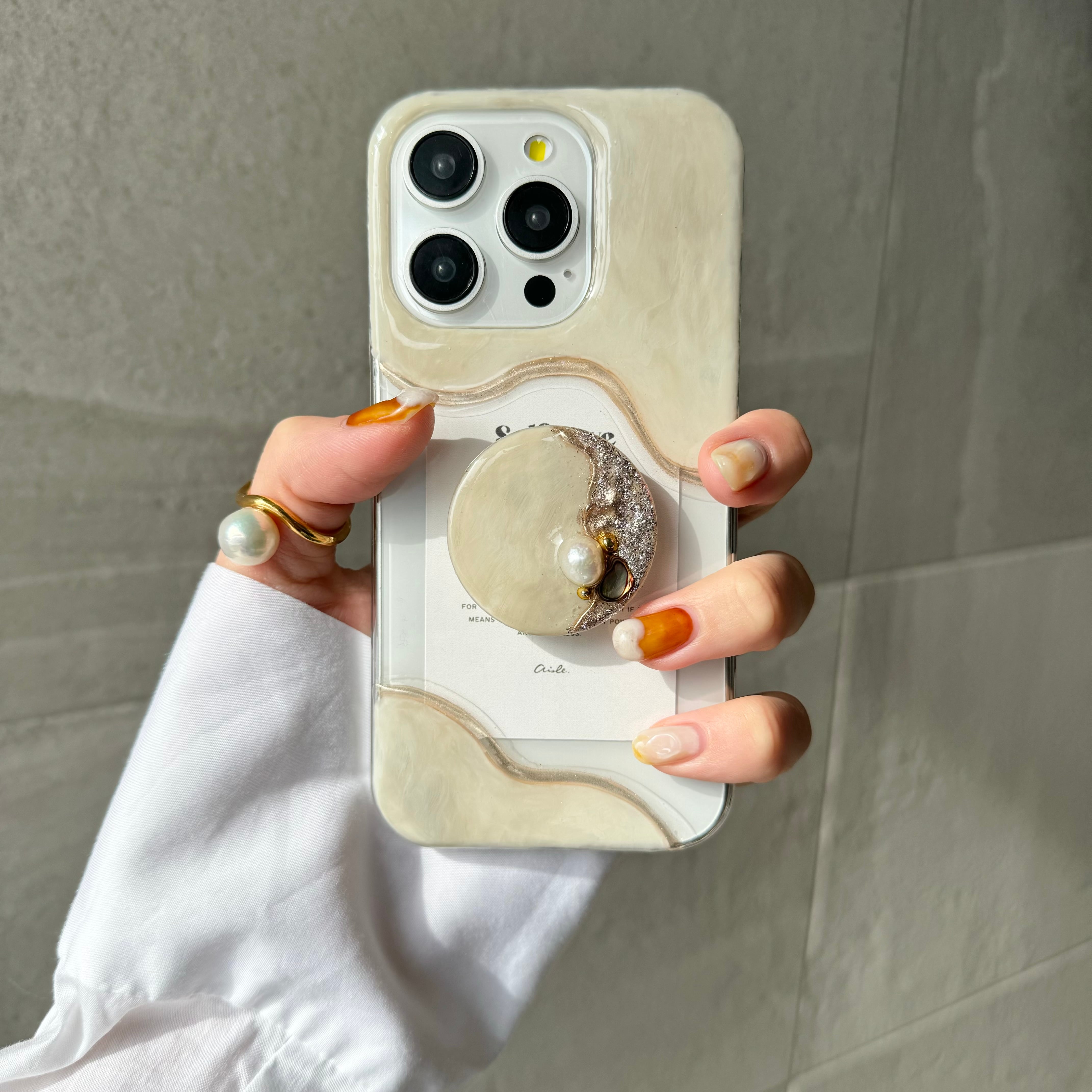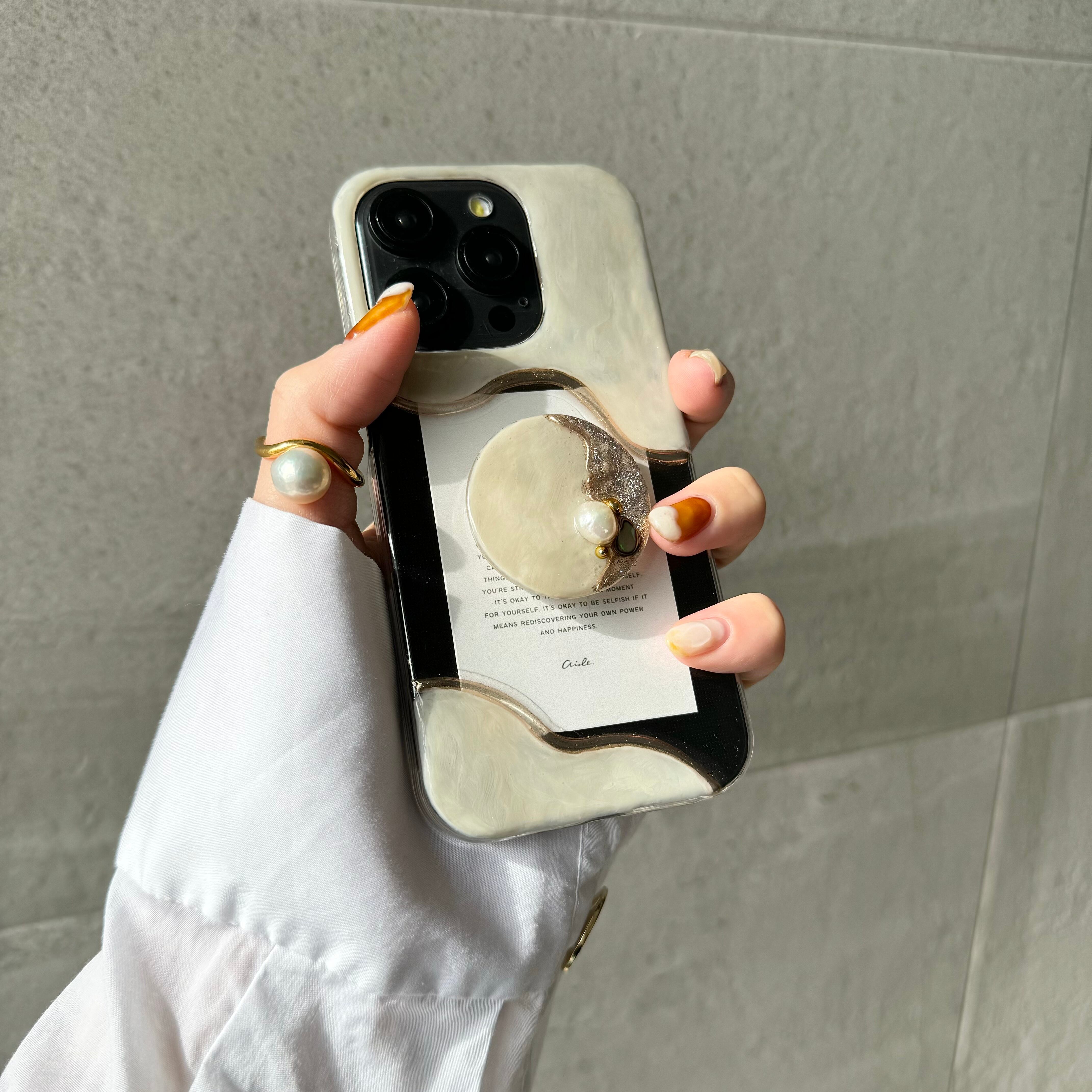 〈スマホグリップ付き〉ニュアンスiPhoneケース【選べるカード】