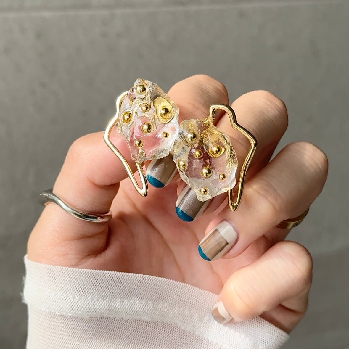 クリア¦ゴールド¦スタッズ¦変形¦個性派¦ピアス・イヤリング